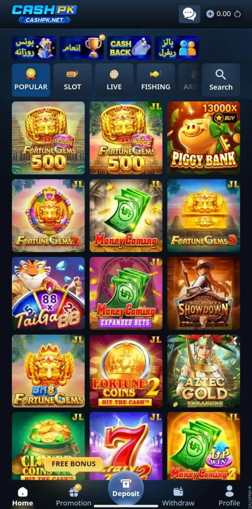 CashPK Game is an online gaming platform in Pakistan that combines entertainment and earning opportunities in one mobile app. It includes different types of games such as slots, card games, fishing games, and lucky draw options. The platform is designed for users who want to enjoy gaming while also trying to win real rewards. With a simple interface and fast performance, CashPK Game works smoothly on most Android devices. It also supports local payment methods, making it easy for Pakistani users to deposit and withdraw money.